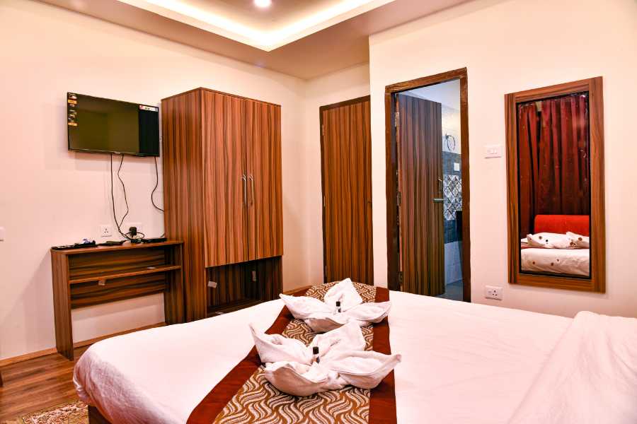 Rufina Palm Bliss is a premium hotel located in Pelling, with a scenic mountain view of Kanchenjunga, experience the exclusive rooms and on-sight restaurants Private Balcony Rooms, Parking. The hotel offers multiple luxurious facilities and amenities to ensure that guests have a comfortable and enjoyable stay. The hotel features elegantly designed rooms that are equipped with every modern amenities ,Wi-Fi, and comfortable bedding.